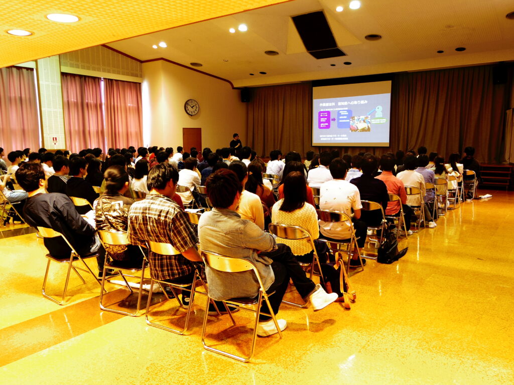 在校生も就職活動に向けて、実際の現場の話しを聞いたりしていました。卒業生からの発表では「他職種連携」や「就職に向けて」などの発表があり、在校生に向けての発信もありました。